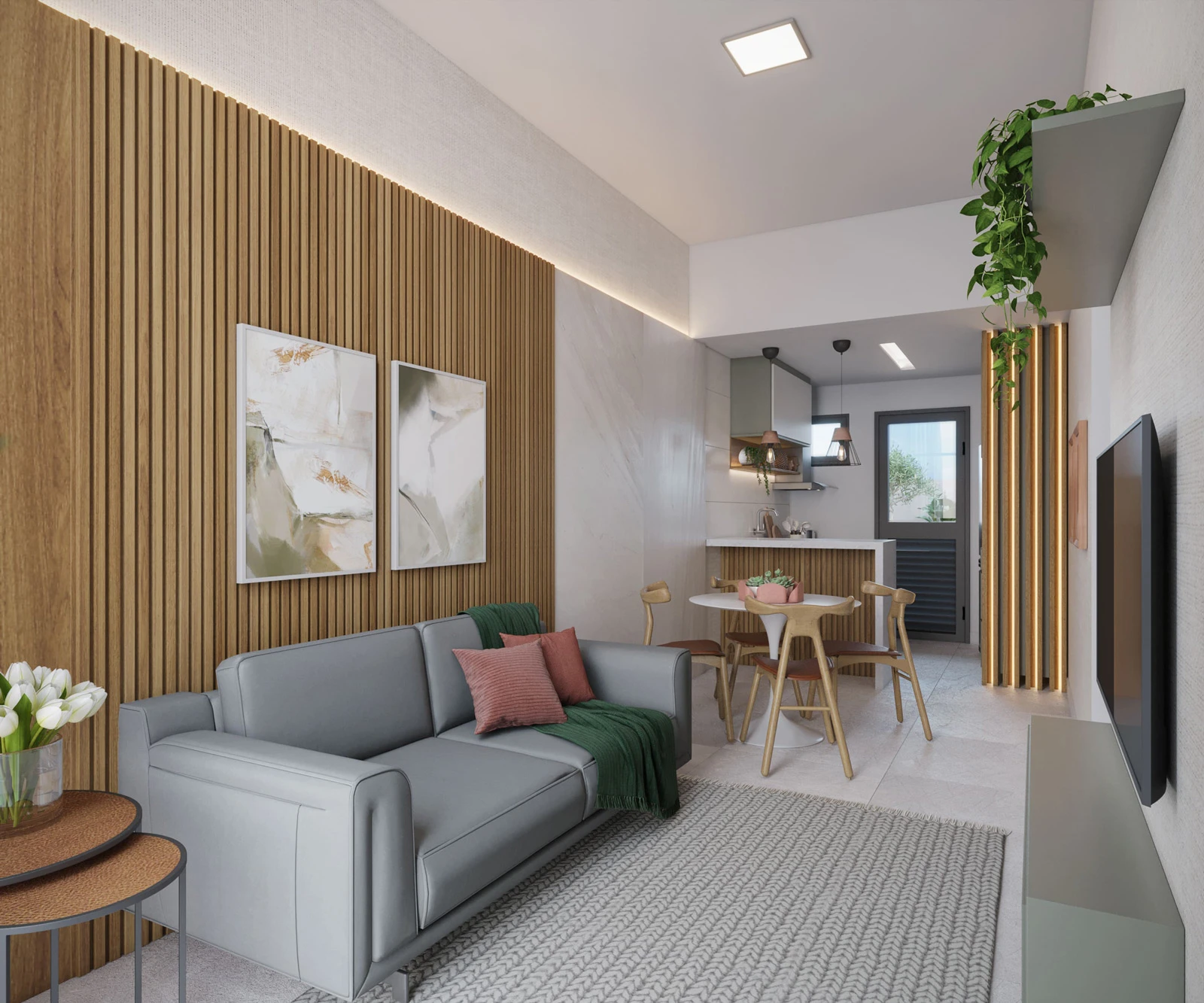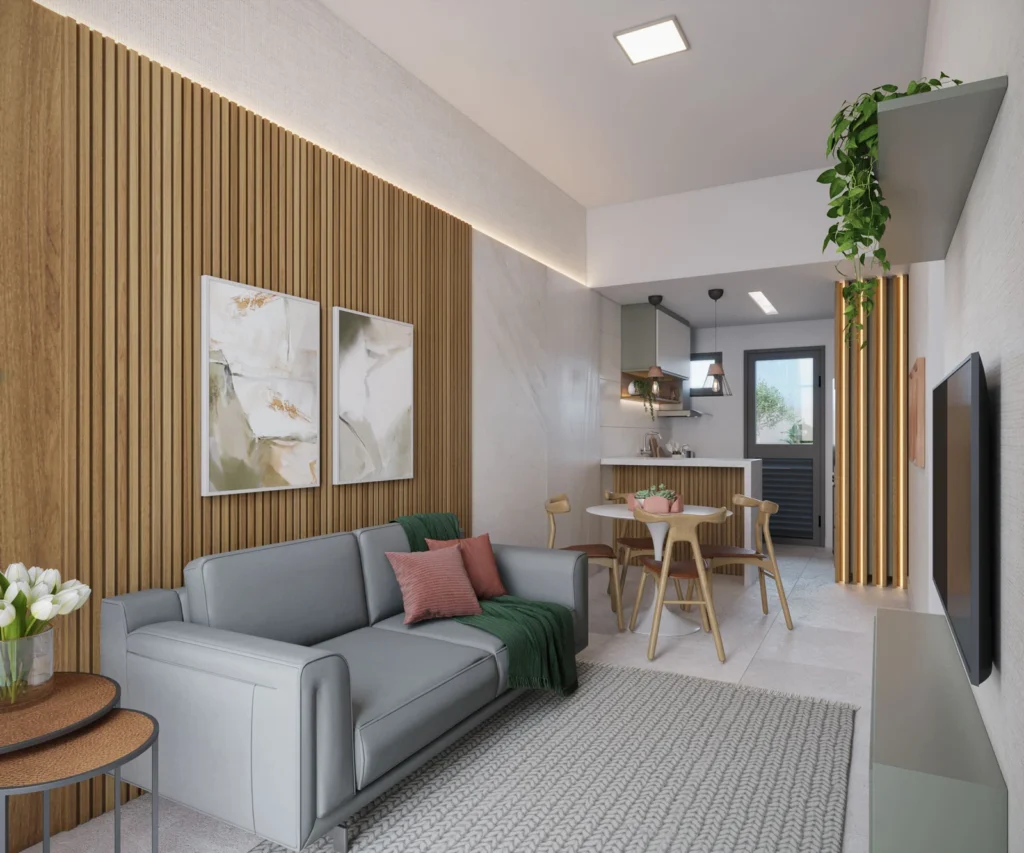 Sala e cozinha integradas em